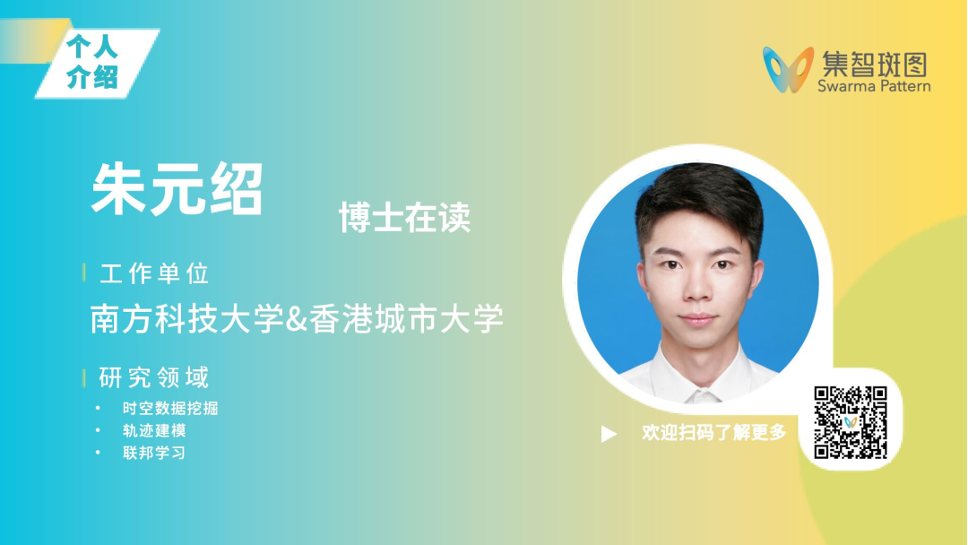 朱元绍,南方科技大学&香港城市大学联培博士在读,研究方向包括时空数据挖掘、轨迹建模、联邦学习等。