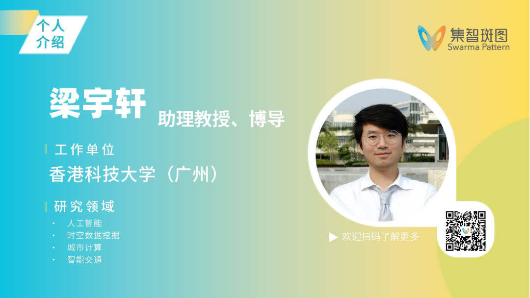 **梁宇轩,**香港科技大学(广州)智能交通学域、数据科学与分析学域助理教授、博士生导师。长期从事人工智能与时空数据挖掘技术在城市计算等领域的跨学科交叉研究。在TPAMI、TKDE、AI Journal、KDD、WWW、NeurIPS、ICML、ICLR等多个权威国际期刊和会议发表高水平论文70余篇。谷歌学术引用量3700余次,h-index为30,多篇论文入选最具影响力KDD/IJCAI论文。长期担任TKDE、TMC等国际知名期刊审稿人,KDD、WWW、NeurIPS、ICML等国际顶级会议程序委员会成员,曾获评SIGSPATIAL杰出程序委员会成员。多次担任数据挖掘和人工智能顶级会议相关研讨会(UrbComp、AI4TS)的程序主席。曾获得新加坡数据科学联合会论文研究奖,第二十三届中国专利优秀奖,第四十九届日内瓦发明展银奖等海内外奖项,多项研究成果在京东智慧城市相关业务中落地应用。