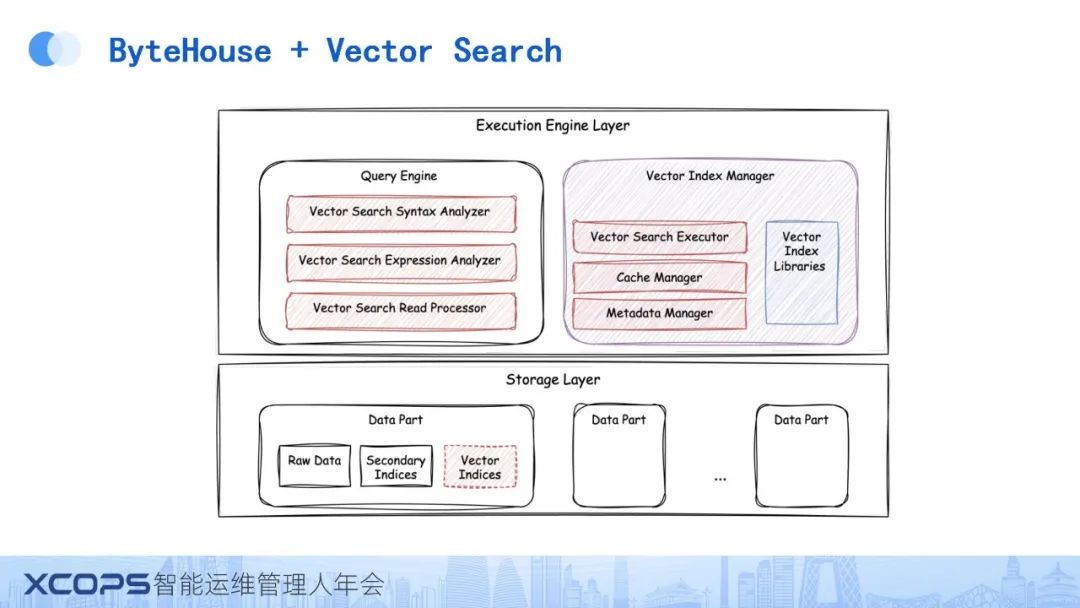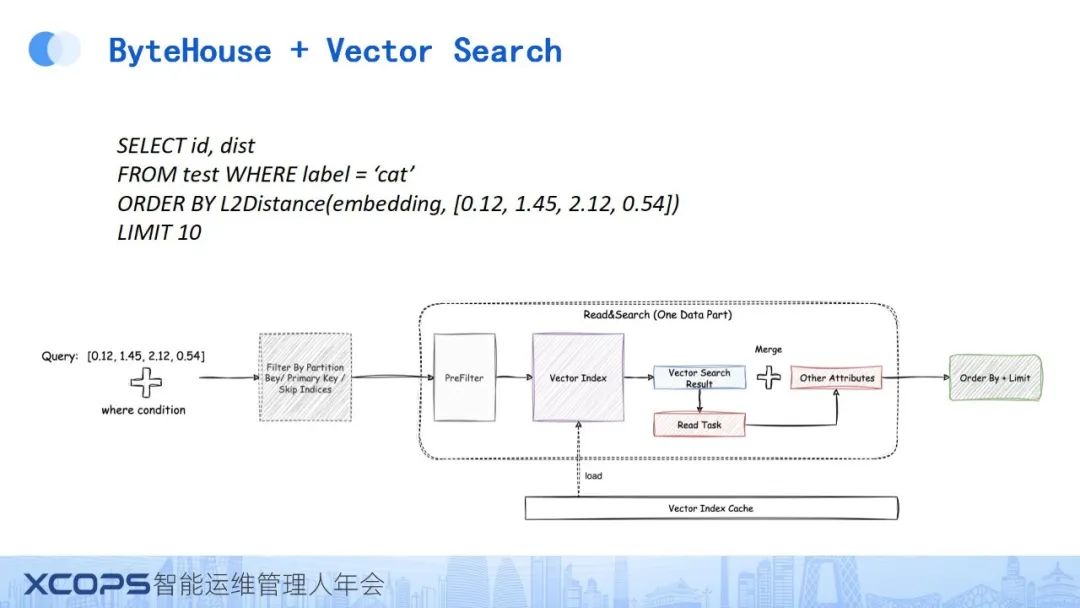 首先,在每个数据分区(Data Part)内部,我们维护了一个支持持久化的Vector Index文件。同时,我们对Query Engine进行了深度改造,涵盖了从解析层到查询生成层,再到算子执行层的多个环节。此外,我们引入了Vector Index Manager,负责Vector Search的执行、Cache管理、元数据管理以及第三方库的管理。