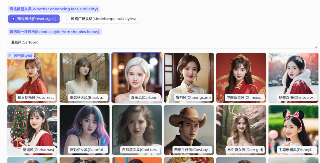 预设风格如下: