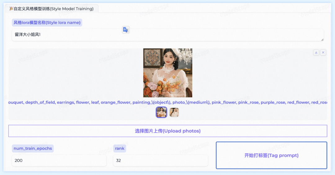 如果预设风格不满足剧情设计,那么就需要来亲手训练一个LoRA风格,目前提供可视化界面的训练方式,零代码也可以完成。