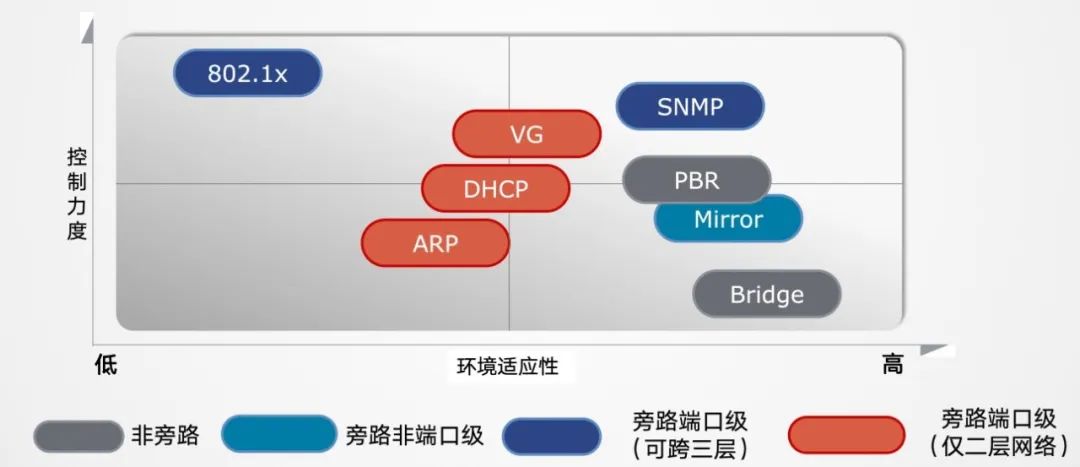 根据不同网络环境下终端设备和网络设备部署的差异,采用不同的准入控制技术或多种网络控制技术混合的方式找到针对不同网络准入场景的最优方案。