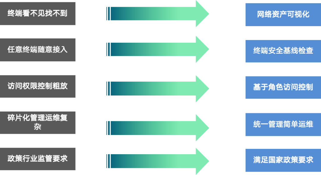 《信息安全技术网络安全等级保护》明确指出必须对内部网络采取安全管理、准入控制管理、非法外联控制、身份认证、安全审计管理、介质管理、资产管理等相关措施。