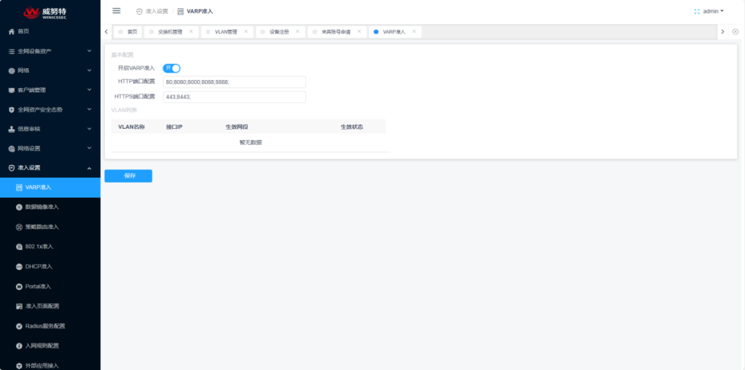 图7 威努特NAC网络准入系统ARP准入配置界面
