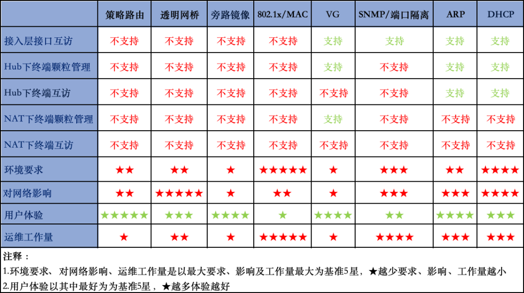 **● 控制粒度粗:**ARP准入控制通常针对整个网段,难以实现精细化的用户或设备级别控制,相较于802.1x等技术,对终端管控的颗粒度较差。
