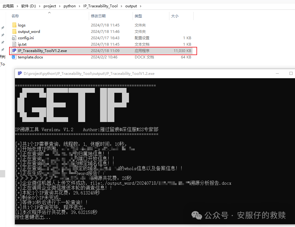 5、双击运行:IP_Traceability_ToolV1.2.exe,等待程序运行结束。