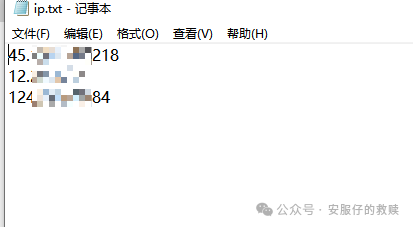 4、配置完成后即可开始使用,将需要查询的IP放到ip.txt文件下,无需去重。