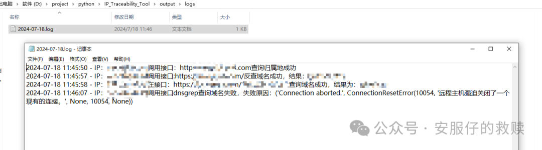 6.增加IP反查域名的接口,新增接口报错和成功写入日志文件。