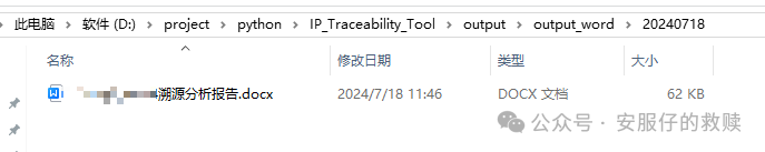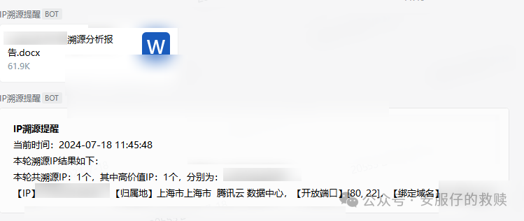 7、如果查询到了域名,则认为这个IP属于高价值溯源IP,会在output_word下按照日期创建文件夹生成word报告并发送至企业微信,如果没有查到域名,则认为这个IP属于低价值溯源IP,会在output_txt下按照日期创建文件夹生成文本文件。