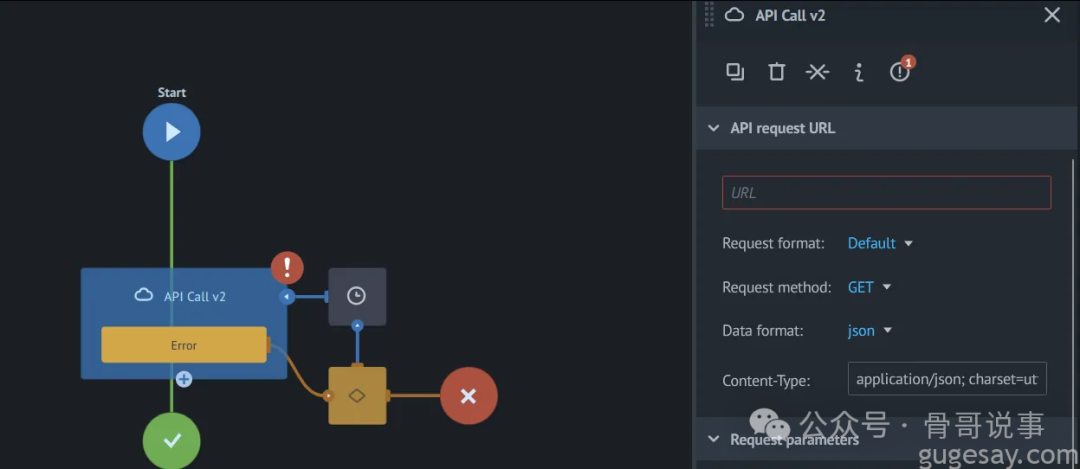 其中一项任务称为API调用,因此该功能值得对其进行 SSRF 测试。将任务添加到流程后,可以指定主机和方法: