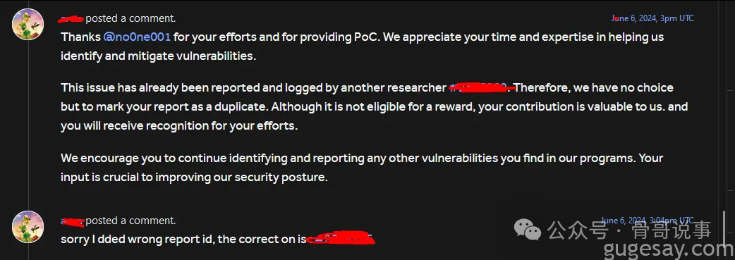 成功拿到敏感信息。白帽小哥很快更新了漏洞报告,并提供了详细的复现步骤,厂商在对该漏洞讨论后的 3 天给出了回应: