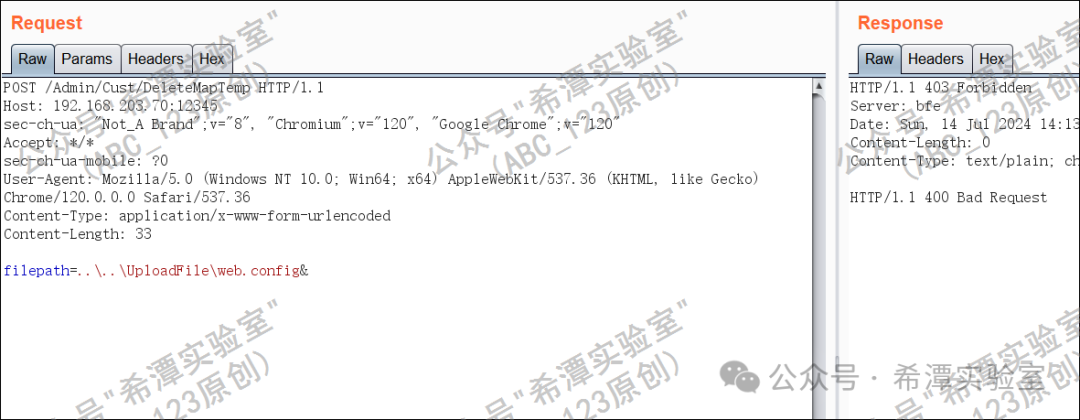 最终按照代码拼接成如下数据包,通过..\..\跳转,成功将web.config文件删掉: