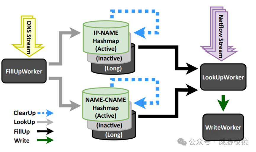 和 DNS 数据差不多的处理流程,只是要在 Hashmap 查 IP 与域名的对应关系。值得注意的是,CNAME 的关系最多嵌套查六次(只有不到 1% 的 CNAME 链会超过 6 次)。