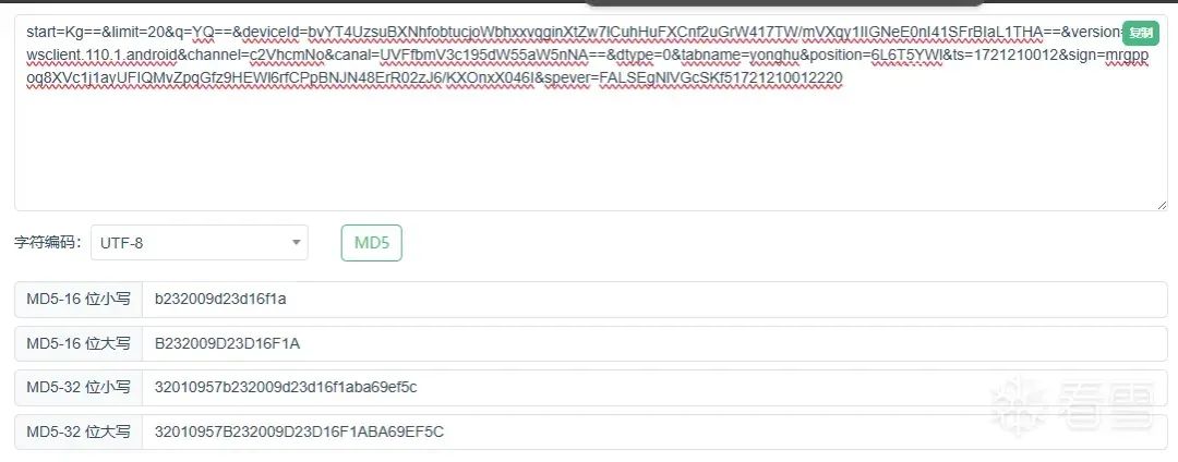 将 str、HttpUtils.f29793s 和 j2 进行字符串拼接。其中,HttpUtils.f29793s 为静态变量其值为:f29793s = "gNlVGcSKf5"。然后使用 StringUtils.n() 方法对拼接后的字符串进行处理,StringUtils.n() 方法,用于计算字符串的 MD5 哈希值。