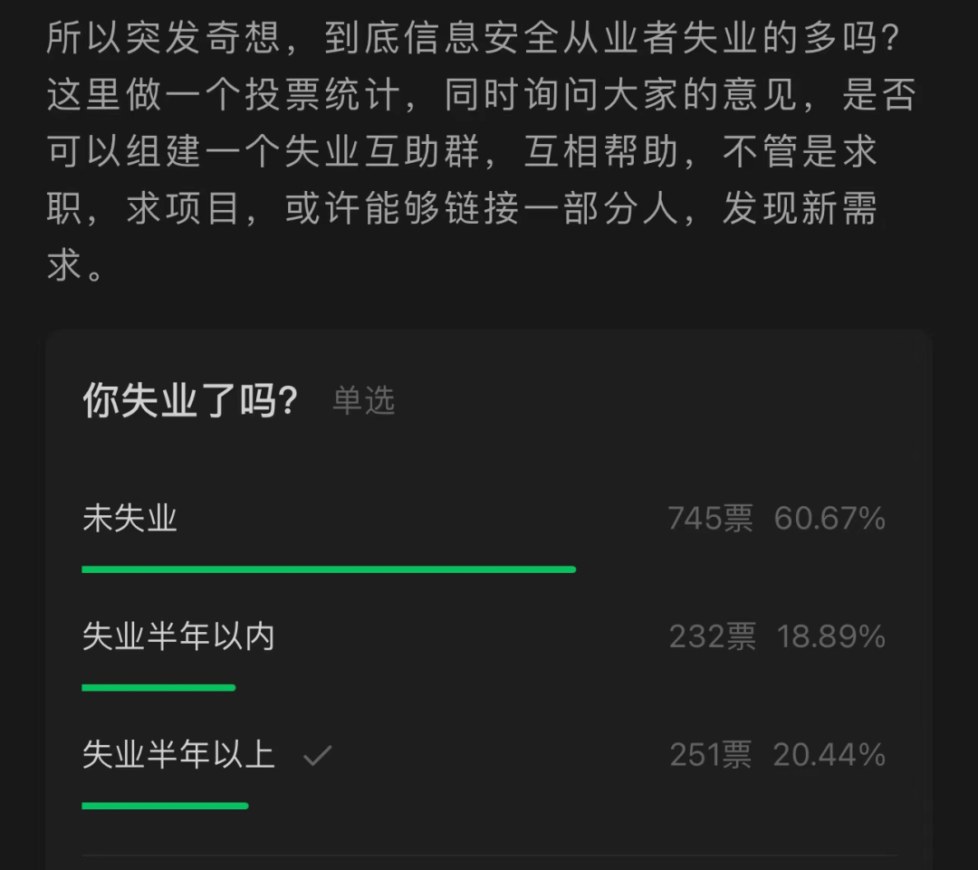 如今都知道整体环境大不如前,工作岗位变少的同时,从事信息安全行业的人在不断增加,从而加剧竞争,失业的人变多,薪资水平降低,之前统计的失业率高达 40%,也就是 10 个人有 4 个失业找不到工作,想想都可怕。