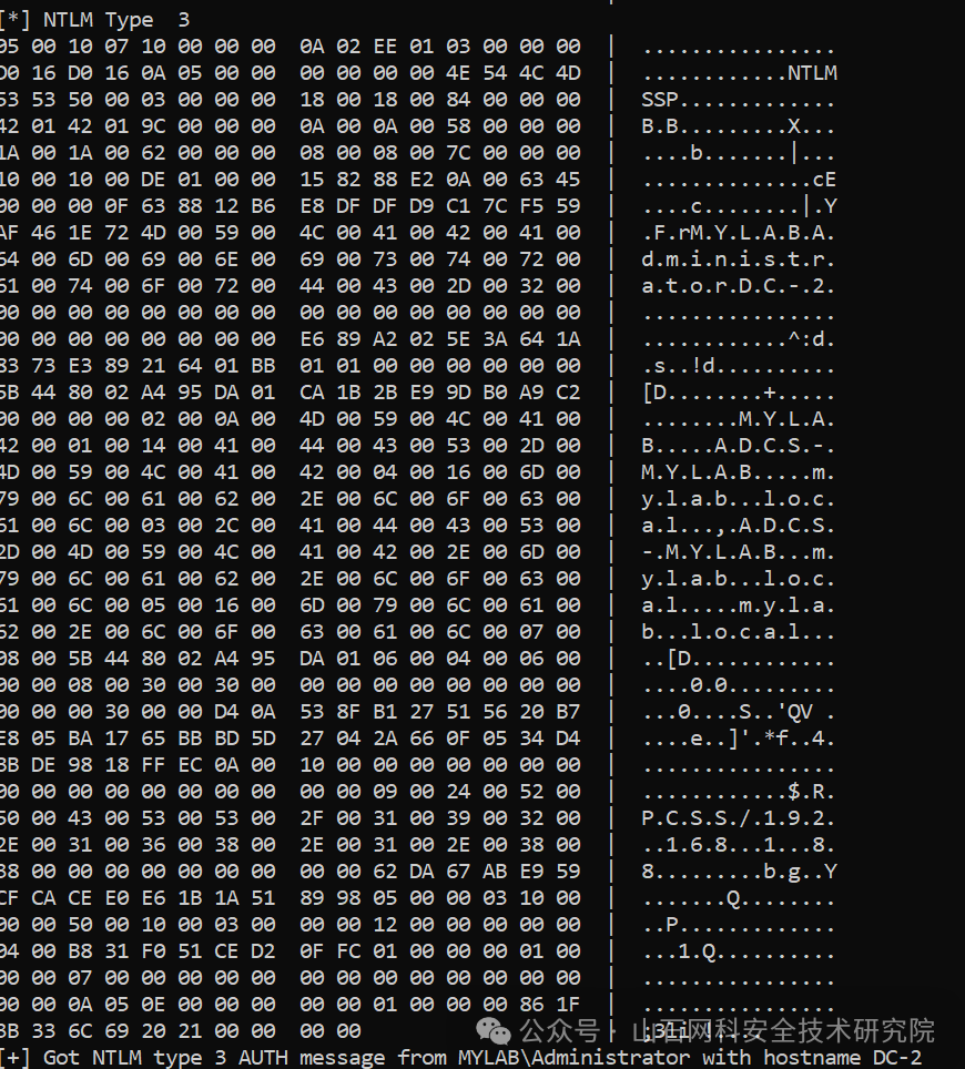 如果成功,我们就能截获连接到域控制器的用户的认证,而这个用户理论上应该是域管理员。