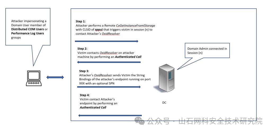 关键是有两个认证过程:第一个在 oxid resolve 调用时发生,第二个在受害者尝试连接恶意端点时发生。