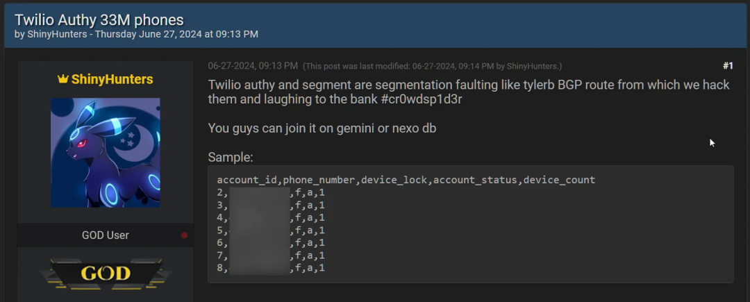 ShinyHunters 在黑客论坛上分享 Twilio Authy 数据