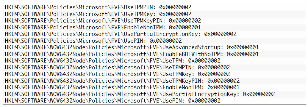 **·**EnableNonTPM = 1:允许在没有兼容 TPM 芯片的情况下使用 BitLocker,需要 ·USB 闪存驱动器上的密码或启动密钥;