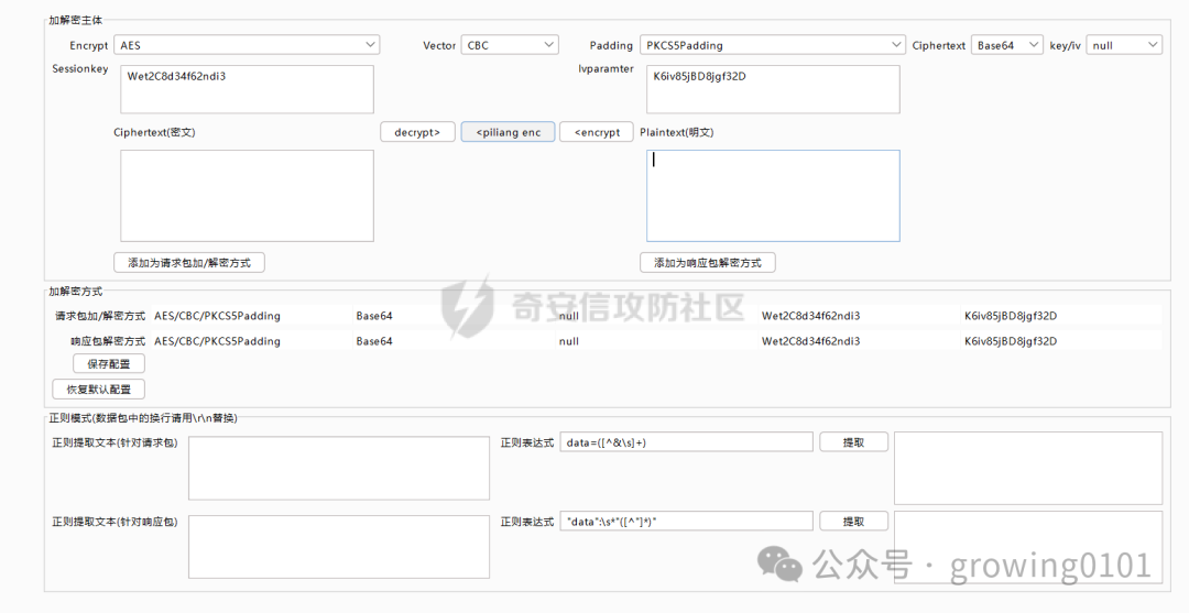 配置好加解密,然后写个正则匹配请求以及响应中的加解密的数据