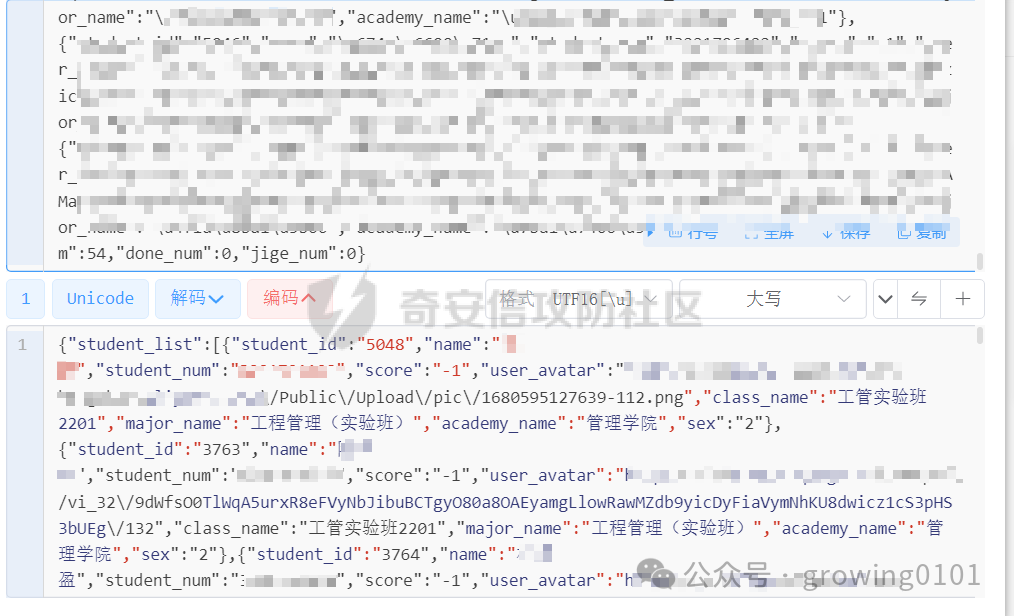 这个接口就返回大量数据,解密后就是学生数据了