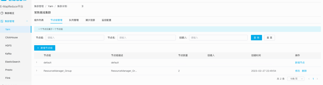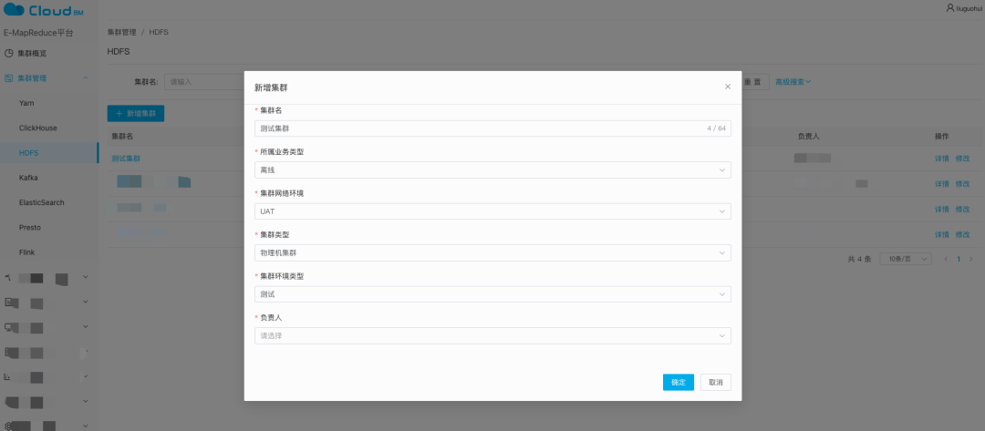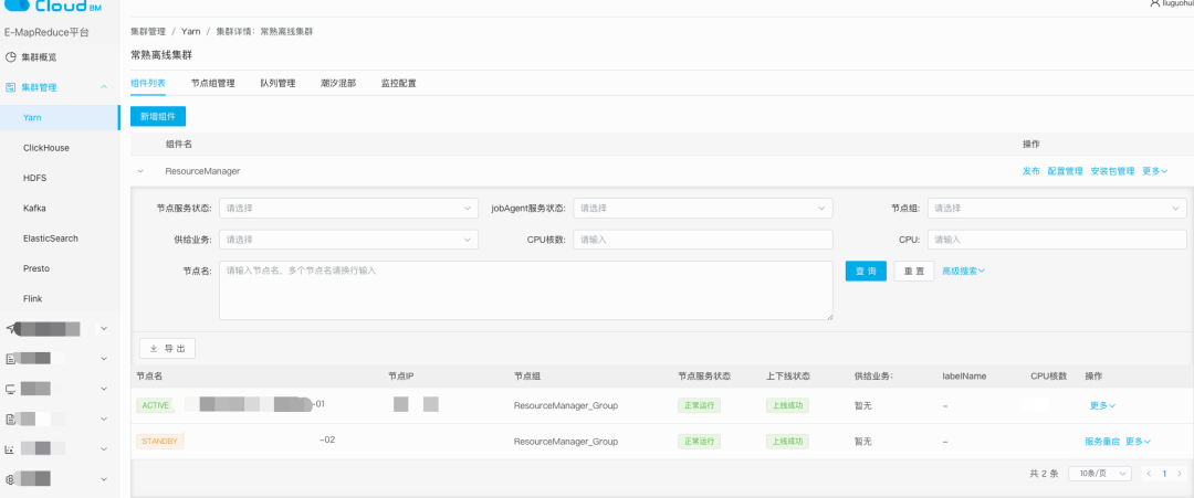 为适配不同业务、不同规模、不同网络环境、不同用途的部署方式,同时考虑到开发周期和成本。底层功能模块尽可能的通用、可复用,上层应用区分用户视角和管理视角。用户视角仅显示有权限的集群,更多展示查看、监控类的实例。管理视角则可以快速新增创建并部署集群。当前我们已经支持了如 HDFS、Spark、Flink、ClickHouse、Kafka等集群管理能力。