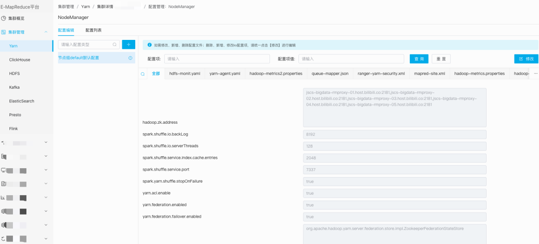 BMR的配置管理,支持版本快照功能,可按照配置项快速检索,同时在修改保存时有合法性检查,周期性巡检集群节点磁盘上配置的版本和服务运行生效版本不一致的预警。
