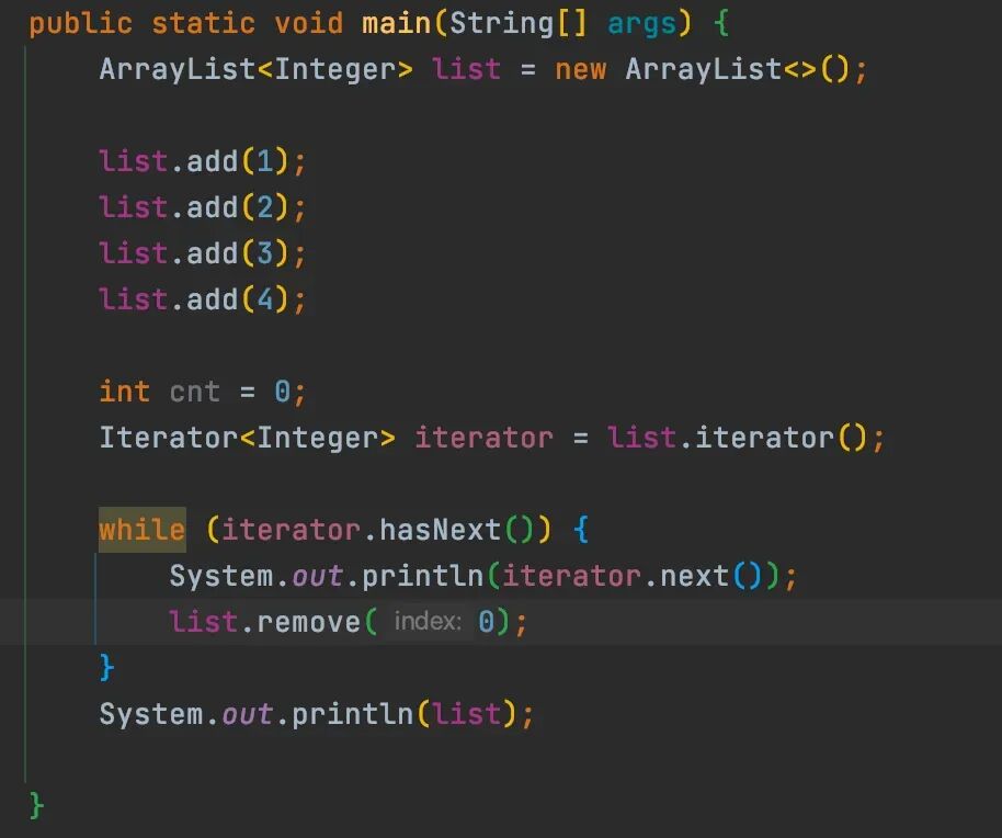 此时,笃某大胆猜想:是不是迭代器在最后一次遍历时,“偷偷”修改迭代对象,迭代器是不会进行检查的。抱着试一试的心态,笃某打开了平时做两数之和的工程文件,写了一个demo: