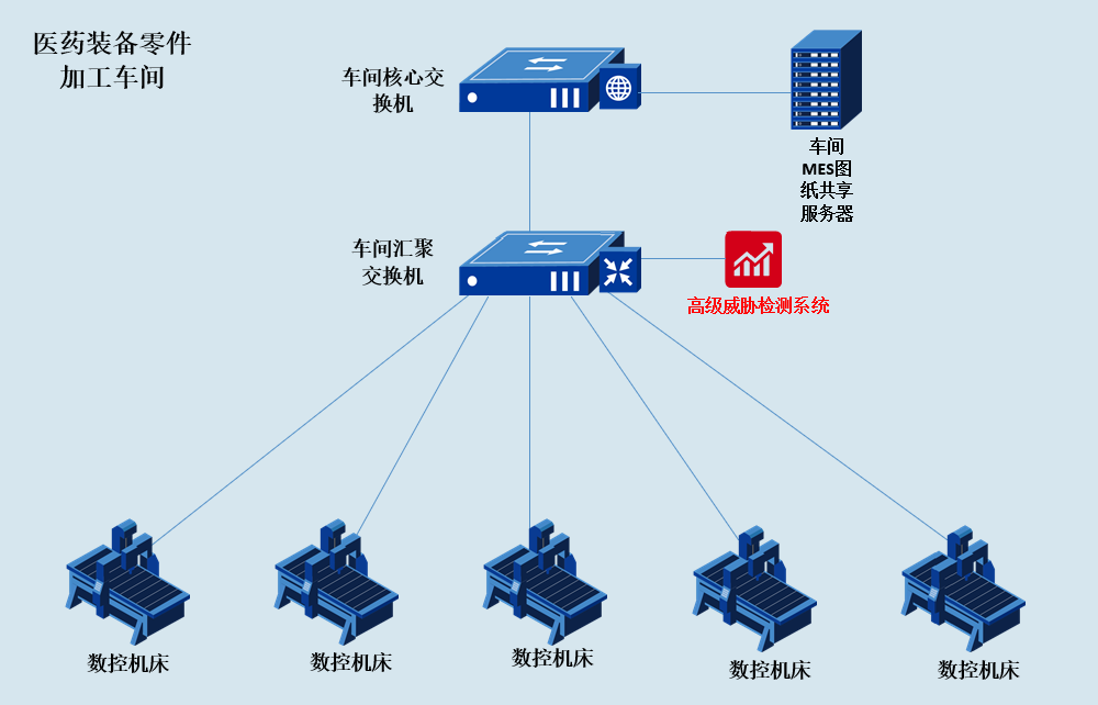 5)数控机床、服务器缺乏有效的已知和未知病毒的防护措施,一旦出现病毒入侵行为,无法有效防范;