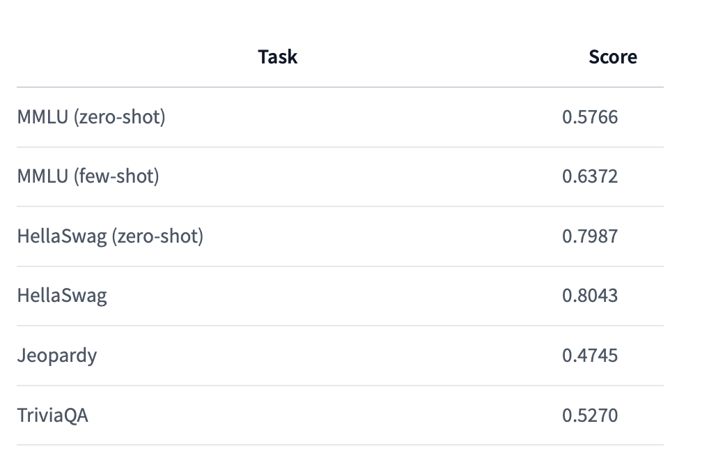 以下是 DCLM-7B 在各种任务(部分)上的评估结果: