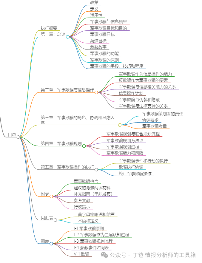 - 军事欺骗计划的应用范围:适用于作战指挥部和/或下属联合部队级别的军事欺骗计划的规划和执行。