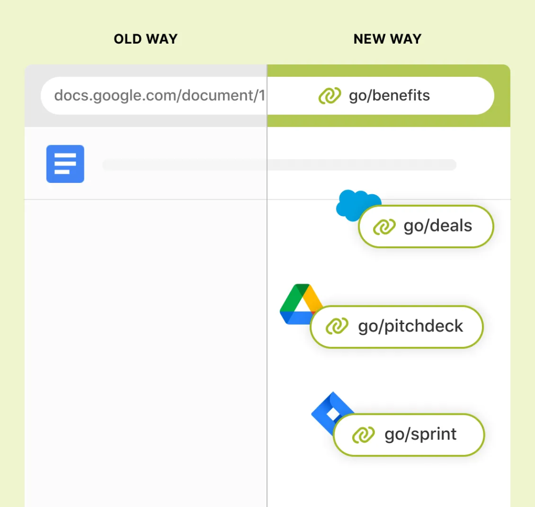 使用 go/benefits 或 go/pitchdeck 代替记忆和搜索长 URL||图片来源:Glean 官网