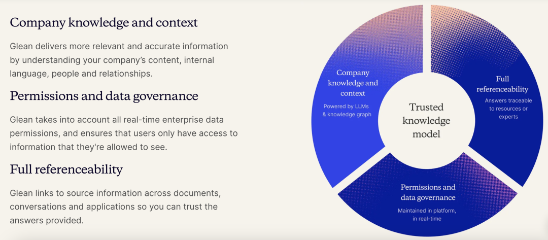 「可信知识模型」围绕三大支柱展开||图片来源:Glean 官网