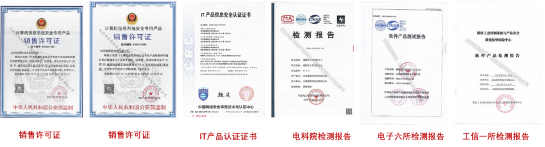 威努特工控主机卫士拥有应用程序白名单、主机安全加固双类别证书的工业安全软件,是国内首个获得CCRC IT产品信息安全认证证书的工业白名单产品,同时获得中国电科院针对电力行业需求开展测试的检测报告及其他国家权威部门开展的工业白名单产品检测报告;
