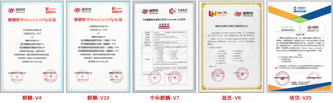 图11:威努特工控主机卫士部分资质示意图