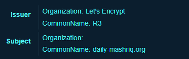 2.本次载荷通联C2中包含“b-cdn”、“t-cdn”等字符串,这类字符串经常出现在摩诃草组织以往C2中。此外多个C2服务器使用“Let’s Encrypt”颁发的免费证书,这与之前摩诃草的BADNEWS木马服务器也类似。