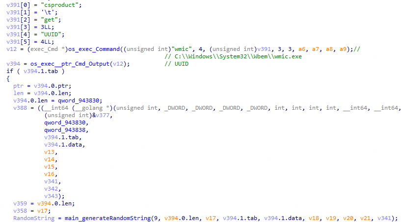 然后使用wmic命令获取UUID的值,若获取失败,则随机生成。