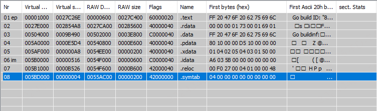 另外查看Winver.exe文件的节发现存在.symtab段,.symtab是Linux系统写ELF文件格式的一部分,猜测该样本还有对应的ELF版本。