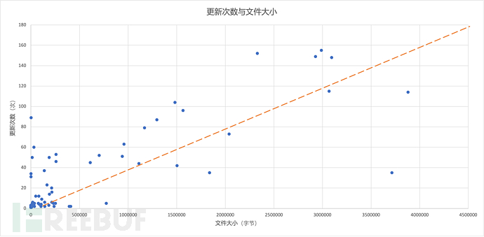 图3-3 C-系列文件的更新次数(猜测)与文件大小的关系