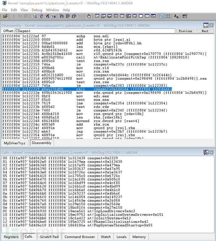 图3-5 安天工程师对CSAgent模块的双机调试分析