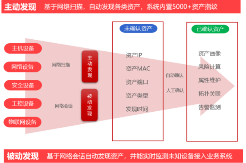 USM通过主动和被动两种方式有机结合,实现了对不同网络条件下的资产全面识别,确保了资产信息的准确性和完整性。主动方式基于网络扫描和深度会话交互技术,能够识别多种类型的资产及其详细信息。而被动方式则通过工业防火墙和工控安全监测与审计系统等设备上报的网络会话数据来识别资产信息,进一步补充和完善了资产库。