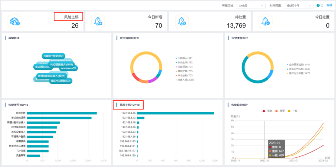 USM还提供了基于资产价值、脆弱性、合规指数和威胁告警信息的资产风险评估功能,通过量化评估资产的风险值,帮助用户更好地了解资产的安全状况,并采取相应的防护措施。