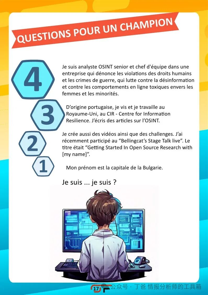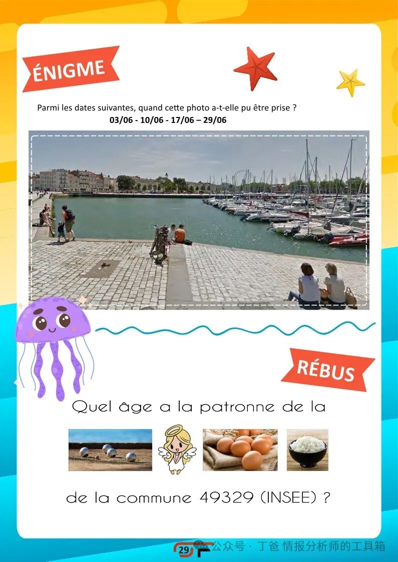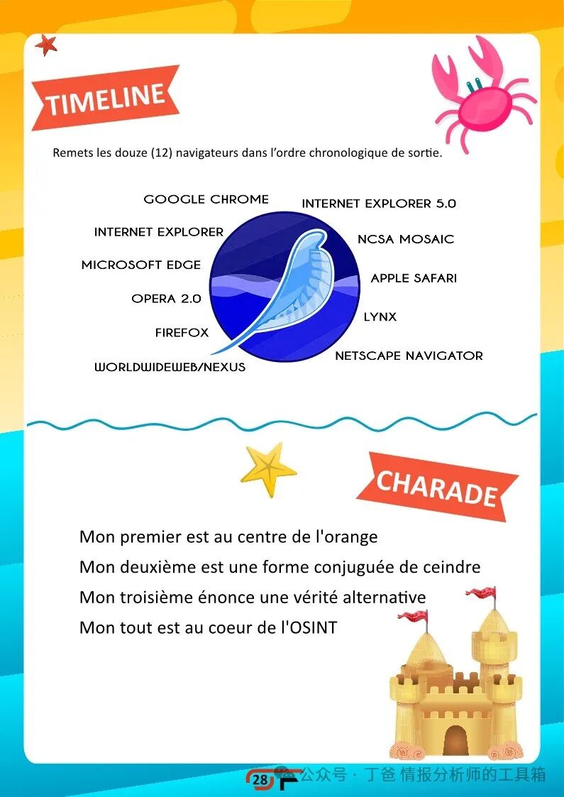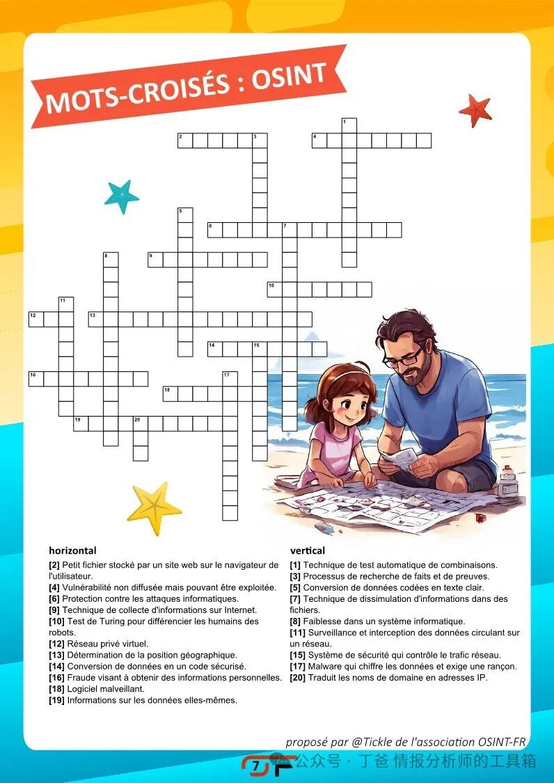 今天给大家推送一份法语版本的开放源情报(OSINT)假期作业,旨在通过游戏化的方式介绍OSINT相关知识,并包含了一些谜题。这个项目是多个组织合作的成果,希望给法语使用者带来乐趣。