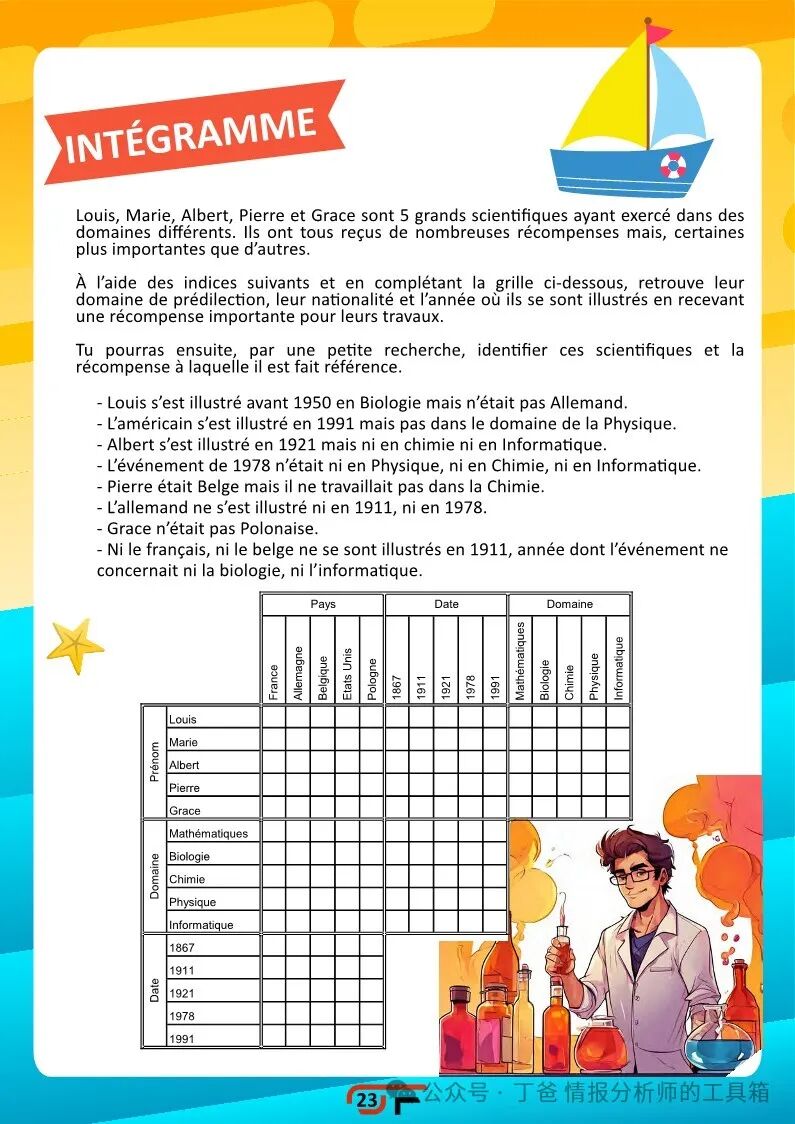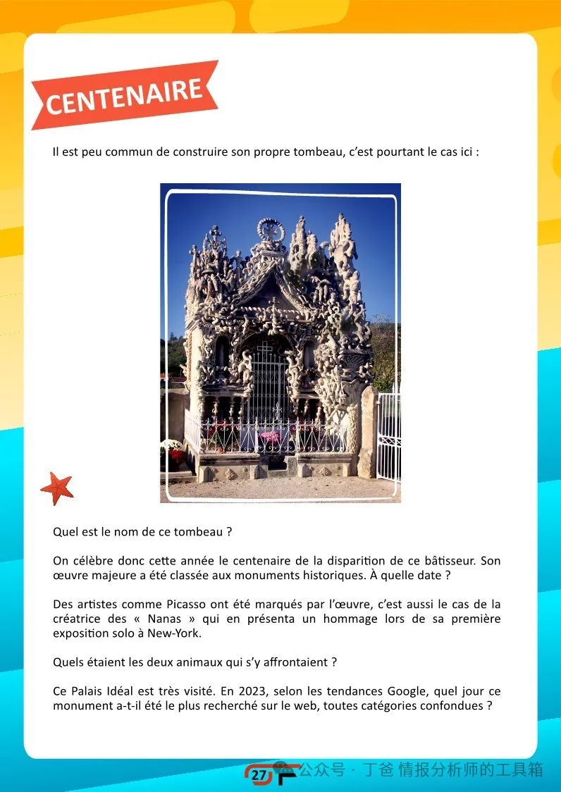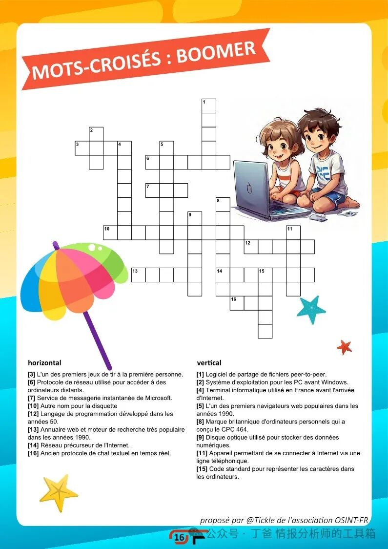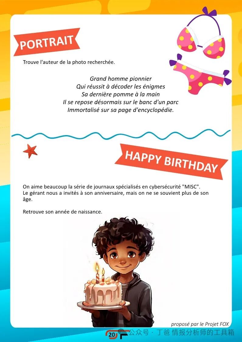 今天给大家推送一份法语版本的开放源情报(OSINT)假期作业,旨在通过游戏化的方式介绍OSINT相关知识,并包含了一些谜题。这个项目是多个组织合作的成果,希望给法语使用者带来乐趣。