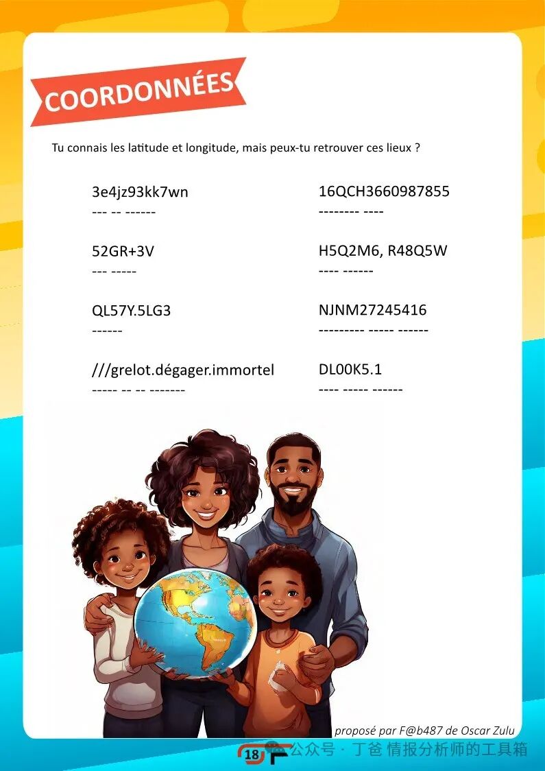 你现在正在阅读一个即兴项目的结果,我们希望它能让所有的孩子和成年人都高兴:以一种有趣的方式提出一种OSINT方法,并辅以一些谜题。法语社区是丰富多样的,所以我们呼吁所有的善意,我们很高兴向您展示与Open Facto、Oscar Zulu、OSINT-FR和Project FOX合作编写的小册子。谢谢你,我们祝你有一个美好的夏天,我们建议你给我们寄一张虚拟明信片:拍张照片,写一条宠物信息。