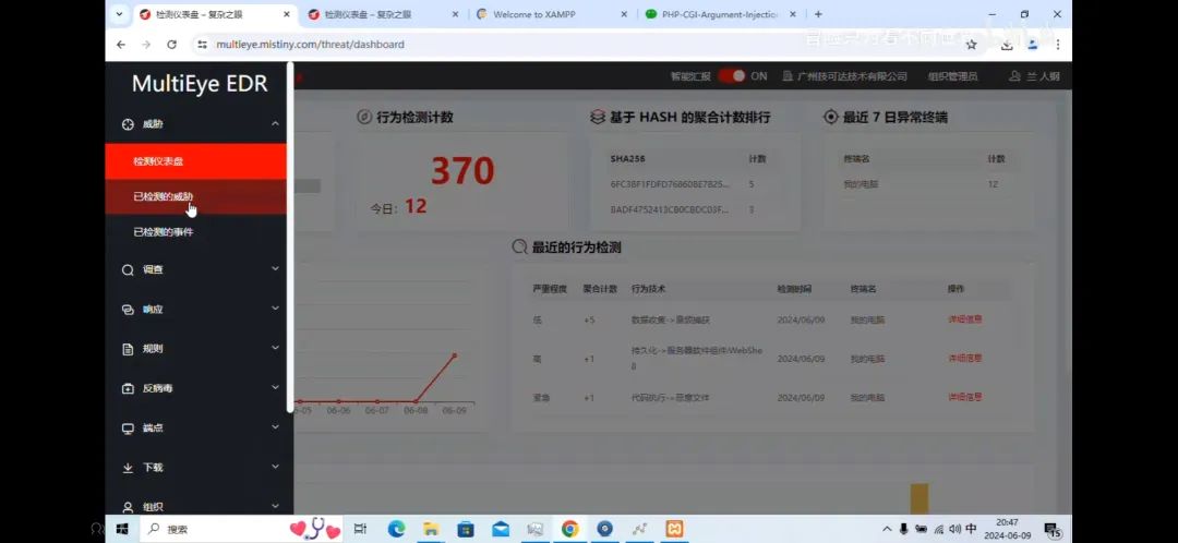来了解一下复杂之眼EDR的异常HASH的聚合计数排行榜,出现行为有异常的,会把哈希提示出来排序,出现异常行为就是有问题,需要排查机器了。上面截图讲的策略,一个应用程序只在客户机器上运行一次,在全网别的机器上从来没运行过没有痕迹说明存在问题的可能性很大,从复杂之眼EDR上可以做基于遥测数据,新发现的应用程序提示功能,客户机器上跑了什么程序会进行排序计数,可以进行威胁情报的研判。