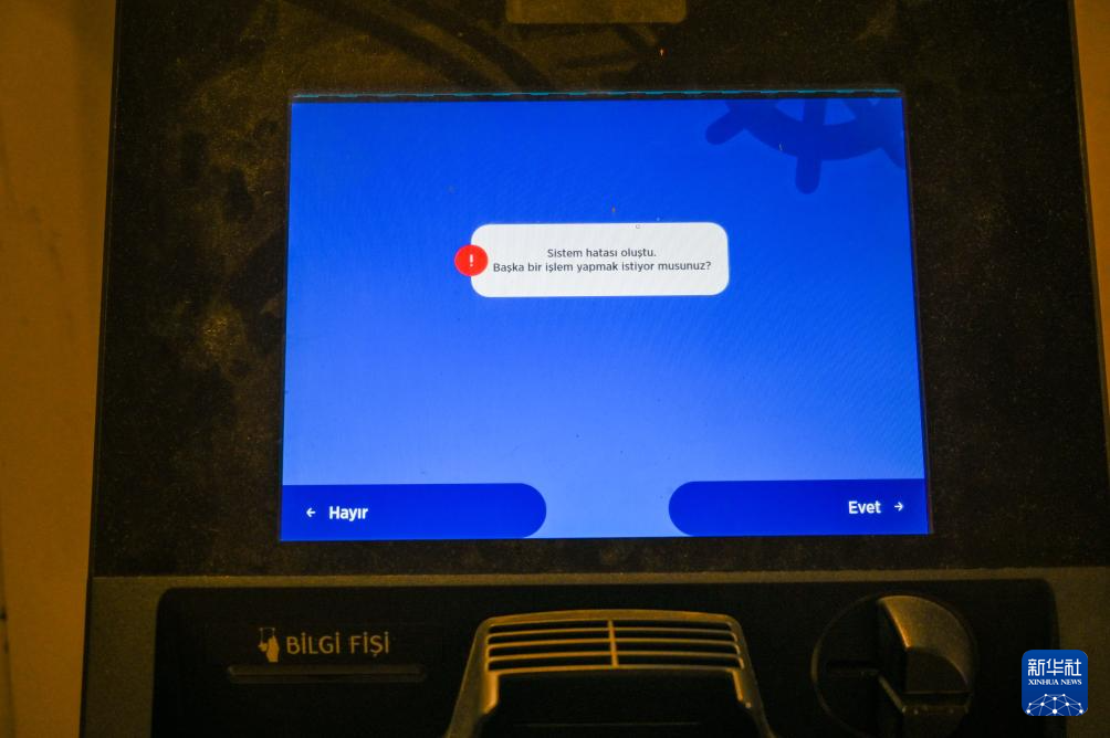 7月19日,在土耳其伊斯坦布尔的街边,一台自助取款机发生故障。新华社记者 刘磊 摄