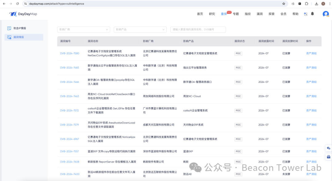 https://www.daydaymap.com/attack?type=vulIntelligence